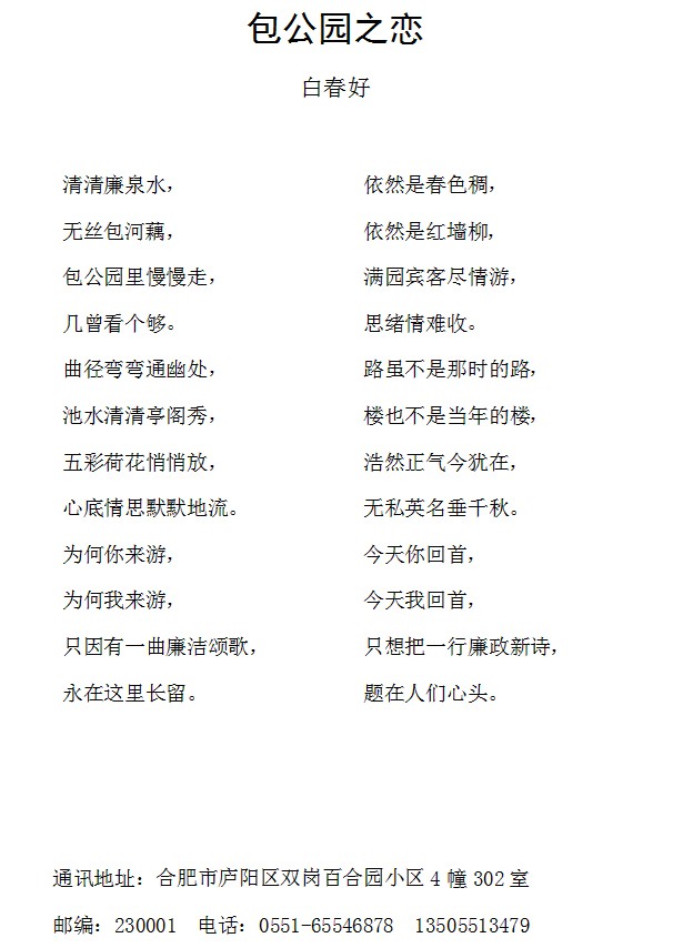 通讯地址:安徽省庐江县黄山南路7号1栋401室 邮编:231500