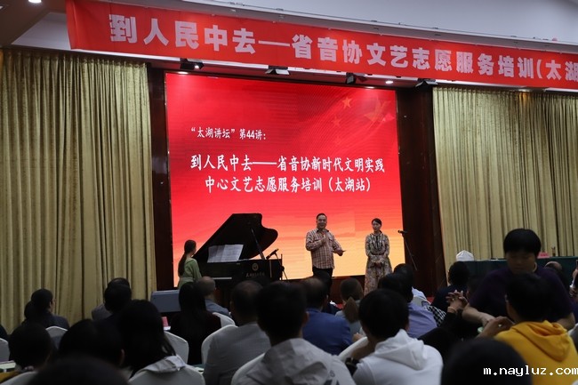 10月22日,“到人民中去——省音协文艺志愿服务培训(太湖县站)”活动在太湖县举行。由省文联副主席、省音协主席盘龙,省音协副主席、安徽艺术职业学院音乐学院院长、教授邝实,省音协副主席、秘书长徐海燕组成的文艺志愿者服务小分队走进太湖,为当地送去了一堂别开生面的声乐专题讲座。当地县委、市文联、县文旅体局、教育局负责人及200名余艺术工作者和爱好者聆听了本次的讲座。
