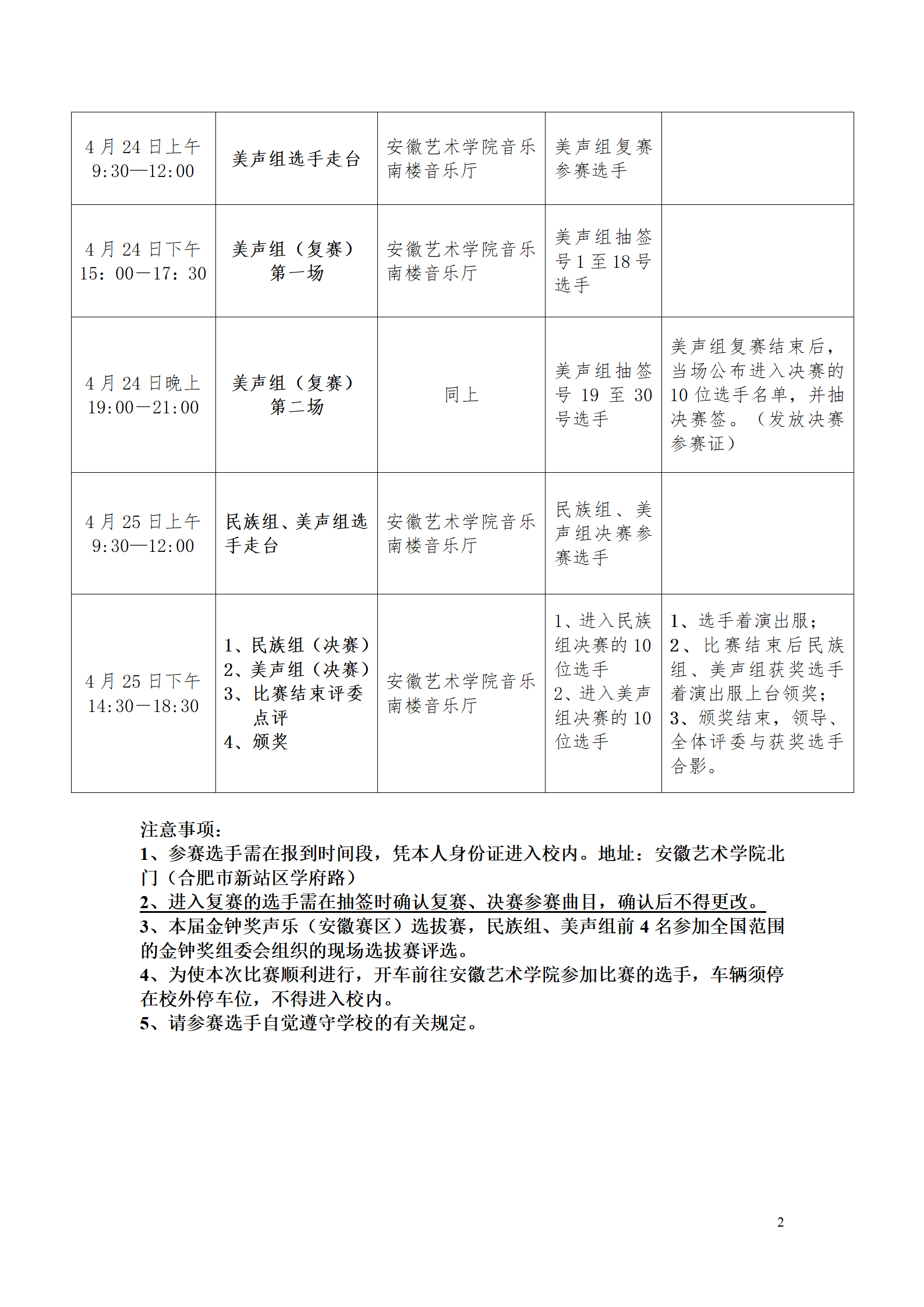 注:复赛如有参赛选手放弃比赛资格,则由候补选手依次递补。选手弃权须本人以书面形式向主办方说明情况,无故弃权者将取消其下届金钟奖安徽赛区选拔赛的报名资格。